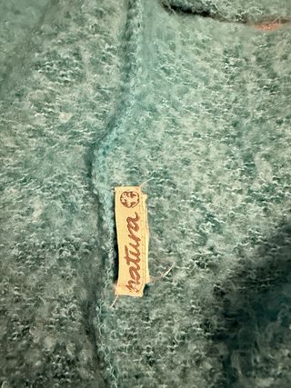 Bufanda de punto en tono azul verdoso, con una textura suave y cálida. - Diseño de punto grueso. - Tacto agradable.