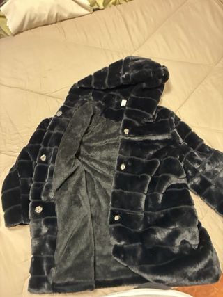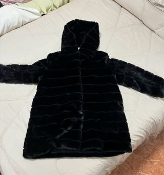 Abrigo de pelo sintético negro con capucha