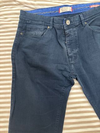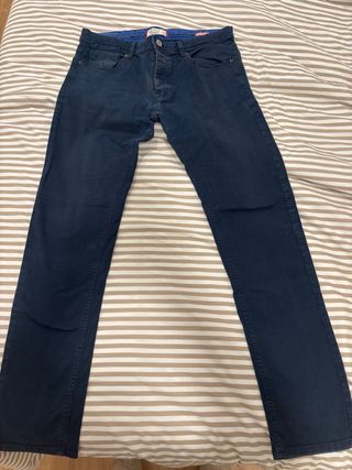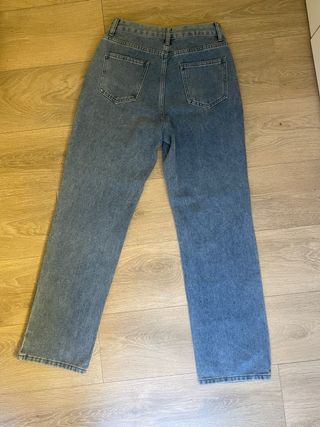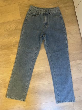 Pantalón tejano de corte recto. - Cintura con cierre de botones. - Bolsillos delanteros y traseros.