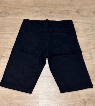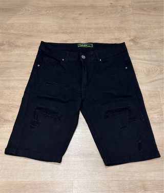 Pantalón corto de la marca Leox en color negro. Presenta un diseño moderno con rotos. - Cintura con trabillas para cinturón. - Cierre de cremallera y botón. - Bolsillos delanteros y traseros.