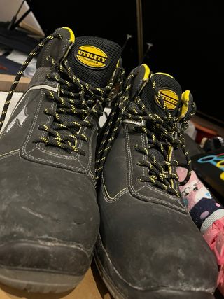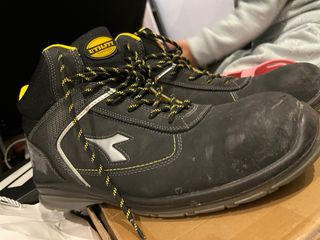 Botas de seguridad marca Diadora con punta de acero. - Color negro y detalles en amarillo. Lo uso muy poco porque le quedo pequeño