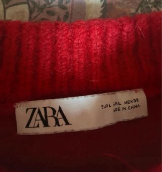 Jersey de punto de Zara en color rojo. - Diseño de cuello redondo. - Manga larga abullonada. - Tejido suave y cálido.