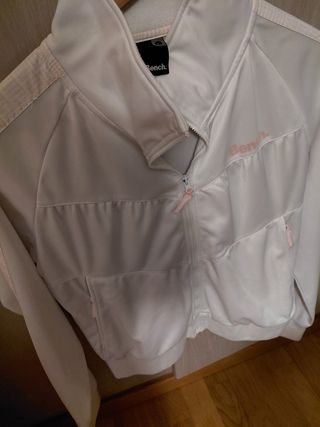 Chaqueta de tejido suave y cálido, con un diseño moderno y detalles en contraste. - Cierre de cremallera. - Bolsillo frontal con cremallera. - Dos bolsillos laterales. - Cordones ajustables en el bajo. ⚠️La cremallera está rota.