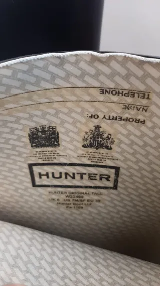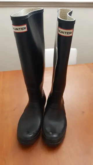 Botas de agua altas de la marca Hunter en color negro. Perfectas para días de lluvia. - Diseño clásico y elegante. - Material de goma resistente. - Forro interior estampado.