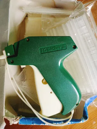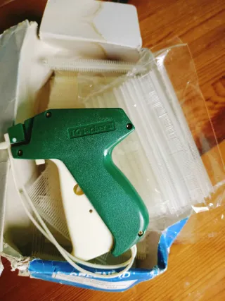 Herramienta para etiquetar prendas. - Incluye pistola etiquetadora. - Viene con múltiples etiquetas de plástico.
