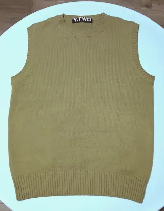 Chaleco de punto de hombre, lana y acrílico de color verde Caqui. Talla L
