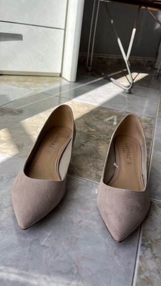 Elegantes tacones de ante en color beige. - Tacón bajo para mayor comodidad - Diseño de salón. -con caja original Precio negociable