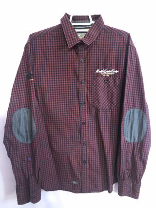 Camisa de cuadros de la marca Koroshi. - Diseño a cuadros en tonos rojos y negros. - Detalle de parches en los codos. - Bolsillo en el pecho. -Medidas A: 50 B: 72 (ver imagen)