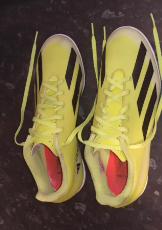 Zapatillas de fútbol sala Adidas en llamativo color amarillo y negro. Perfectas para la pista. - Diseño deportivo. - Cordones amarillos. - Suela de goma.