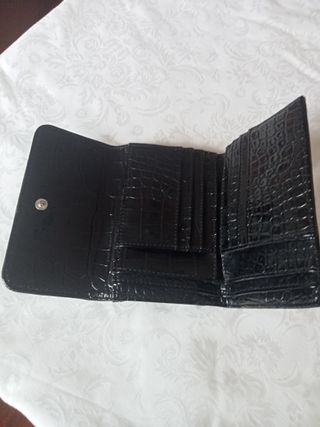 Cartera con tarjetero y Monedero. Tiene signos de desgaste por fuera de ahí su precio por dentro está impoluta. La cremallera y los cierres funcionan perfectamente.