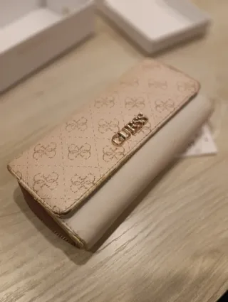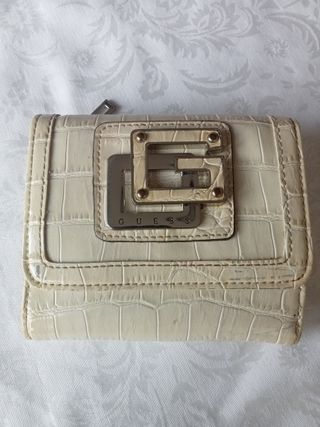 Cartera monedero Guess beige y blanco. Nueva