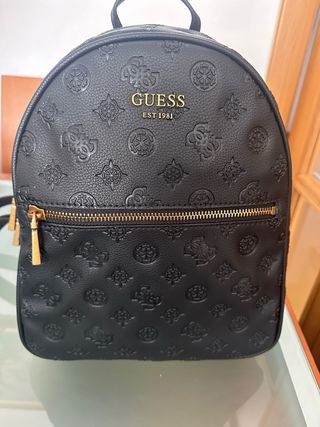 Conjunto de mochila y monedero de la marca Guess. - Diseño con monograma. - Detalles dorados. La mochila es nueva, nunca se ha usado, con código QR de autenticidad. El monedero si lo he usado, pero está muy bien.