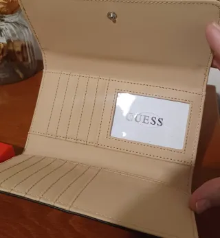 .Elegante cartera de la marca Guess, como nueva, utilizada 1 més y medio, Cortada la etiqueta interior. En su caja como se ve en las fotos, piel por interior un exterior hace como relieve tornasol como se ve tambien, tiene Monedero interior. - Diseño compacto y funcional. - Acabado en piel