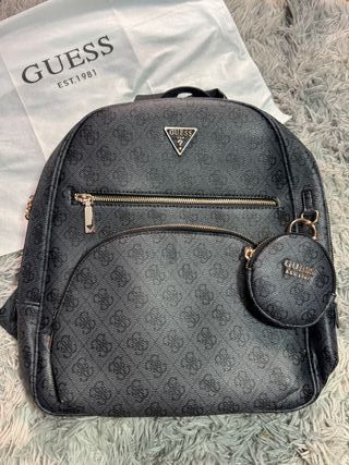 Mochila Guess con un diseño moderno y elegante. - Estampado integral con el logo de la marca. - Cremalleras doradas. - Incluye un pequeño monedero a juego. - Sin uso, fue un regalo y no se ha usado nunca. - Entrega en mano o posibilidad de envío. - Medidas aproximadas 35x28x12. - Cualquier duda puedes preguntar.