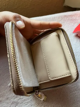 🔺 Monedero GUESS – 10€ Monedero color beige con logo GUESS en el frontal. Diseño sencillo y elegante, tamaño ideal para llevar en el bolso o mochila. Cierre con cremallera. En buen estado. Muy práctico y cómodo. 💰 Precio: 10€