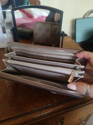 monedero grande de Guess está un poco deteriorado por el uso por la parte de fuera, pero por dentro está impecable