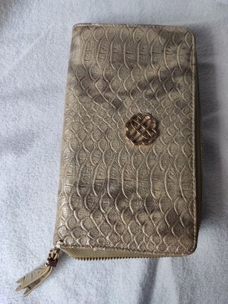 Original Guess. Monedero billetera tarjetero. Color dorada. 13 cm ancho y 21 cm largo. Tiene un pelado pequeñito, apenas se nota. Nunca se ha usado.