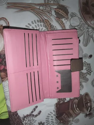 Práctico monedero o billetera para mujer, ideal para llevar tus esenciales. - Diseño elegante y funcional. - Múltiples ranuras para tarjetas. - Compartimento con ventana transparente. - Cierre de cremallera y botón a presión. - en perfecto estado casi no se ha usado casi nada Solo que la cremallera de las monedas no lleva el enganche para abrir pero se puede poner uno o dejarlo así por lo demas como nueva.