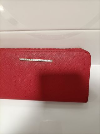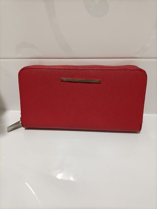 Se vende monedero en color rojo tamaño grande con multibolsillos para tarjetas, monedas, etc... De la tienda Stradivarius.