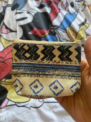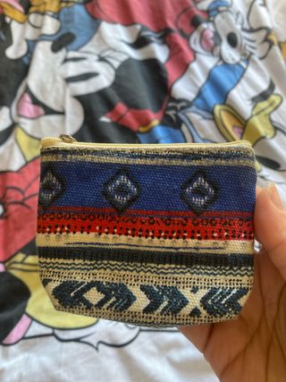 Pequeño monedero con un diseño étnico y colorido. Perfecto para guardar monedas o pequeños objetos. - Tejido con patrón geométrico. - Cierre de cremallera.