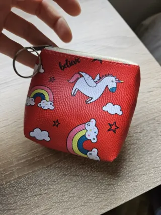 Monedero con un divertido diseño de unicornio y arcoíris. Ideal para llevar tus monedas o pequeños objetos. - Cierre de cremallera. - Llavero incluido.