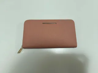 Monedero espacioso en color rosa, perfecto para organizar tarjetas, billetes y monedas. - Cierre de cremallera. - Detalle metálico en la parte frontal (que está un poco desgastado) -22'5 x 12'5 cm