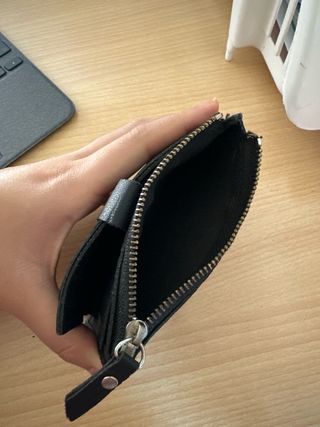 cartera monedero pequeña, ideal para llevar tarjetas y monedas. - Diseño compacto y elegante. - Material de textura agradable al tacto. - Cierre de cremallera.