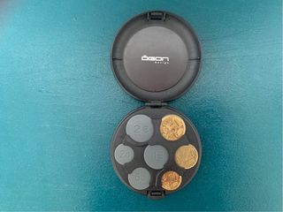 Monedero con 7 compartimientos para monedas de 2 y 1 euro, 50,20,10 y 5 centimos. Muy practico y de estilo elegante.