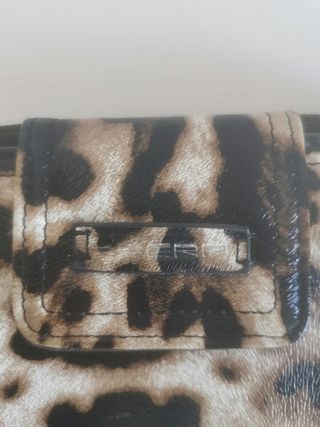 Conjunto de bolso y monedero con un llamativo estampado de leopardo. La cartera por dentro roces de las monedas - Bolso con correa. - Monedero a juego.
