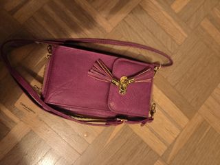 Bolso tipo monedero y porta móvil con un acabado metalizado. - Incluye correa de mano. - Incluye correa larga ajustable. - Esta sin estrenar. - Marca Italiana. - En piel de buena calidad. - Lleva departamento para tarjetas. - Cremallera en el interior del tarjetero.