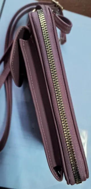 Monedero morado con asa y para móvil