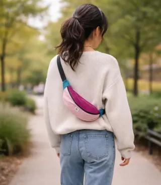 Riñonera hecha a mano ✨ Tela exterior de pana. Forro interior de algodón. Cierre con cremallera. Tiene un pequeño bolsillo interior. La correa lleva un regulador que permite adaptar su longitud para llevarla a la cintura o cruzada como un bolso 🎒 Es ligera, cómoda y perfecta para el día a día, con capacidad suficiente para lo esencial: 👛 monedero 🔑 llaves 🕶 funda de gafas 🤧 paquete de pañuelos 📱 móvil