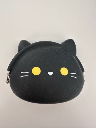 Monedero con forma de gatito, ideal para guardar monedas o pequeños objetos. Su diseño divertido lo hace un accesorio llamativo. - Material de goma flexible. - Cierre seguro para proteger tus pertenencias. - Detalle de ojos y bigotes en la cara del gatito.