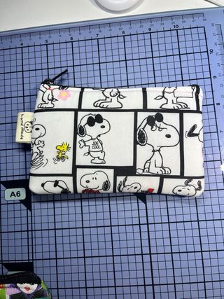 Monedero con estampado de Snoopy y sus amigos en viñetas. - Cierre de cremallera. - Diseño divertido y colorido. - Hecho a mano.