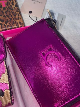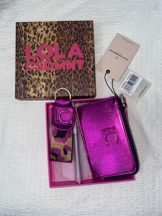 Conjunto de monedero y llavero de la marca Lola Casademunt. Nunca lo he usado, está nuevo y con las etiquetas. Me costó 60€ y lo vendo porque no lo voy a utilizar - Monedero metálico con cremallera. - Llavero con cinta estampada y detalle de logo.