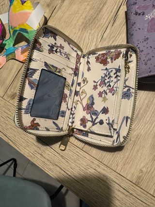 Cartera con monedero, para guardar tarjetas o dinero. Está nueva, no llego a usar.