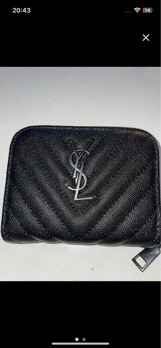 Monedero de la marca Saint Laurent en color negro. Presenta un diseño acolchado con el logo de la marca. - Diseño acolchado. - Logo metálico. - Cierre de cremallera.