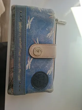 Monedero con un diseño de libélulas y un mensaje inspirador. - Cierre de cremallera. - Detalle de botón a presión. - Adorno circular con logo. Caja para guardar pendientes 1€
