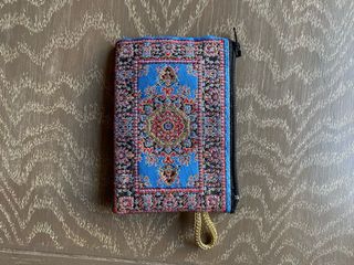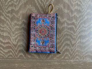 Pequeña cartera con un diseño único y llamativo. - Fabricada en corcho. - Estampado floral en tonos rojos y azules. - Cierre de cremallera.