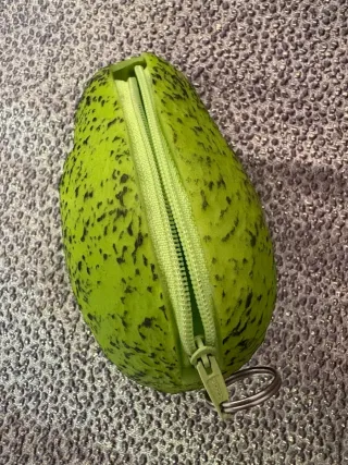 Monedero con forma de aguacate, ideal para llevar tus monedas o pequeños objetos. Su diseño original lo hace destacar. - Cierre de cremallera. - Textura exterior moteada.