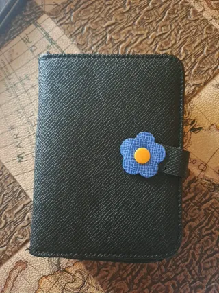 Monedero/Tarjetero Negro con Flor Azul