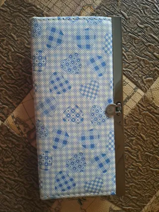 Monedero azul y blanco con cierre