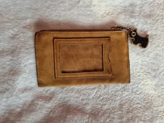Preciosa cartera pequeña de color marrón. Es compacta y tiene un diseño elegante. Tiene cierre de cremallera. Incluye un bolsillo con solapa y varios compartimentos para documentos, tarjetas y monedas. Completamente nueva