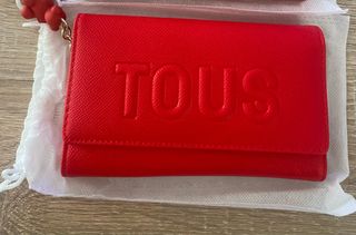 Monedero de la marca Tous en color rojo, con un diseño elegante y un detalle encantador. - Incluye un charm de corazones. - Cierre de solapa.