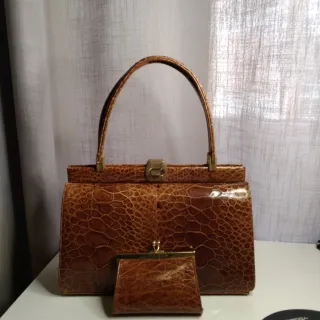 Elegante conjunto de bolso y monedero, bolso piel de tortuga - Bolso de mano con cierre de broche. - Monedero a juego con cierre de boquilla. Bolso vintage años 50. Nuevo.