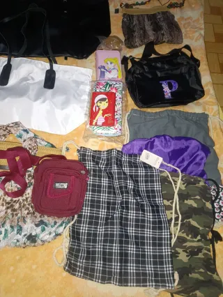 Lote variado de accesorios de moda. - Bolso grande negro. - Bolso grande blanco. - bolso marrón hippy - Bolso pequeño negro con inicial 'P'. - Monedero rosa estilo Salir Moon - monedero billetera flamenco - monedero pequeño rojo - Bolso de mano o bandolera en color burdeos. - 4 Bolso de tela a cuadros, militar, violeta y gris con margaritas. - 5 cinturones de colores. - llavero pompón marrón ( perfecto para ponerlo en bolsos) A RECOGER!!!