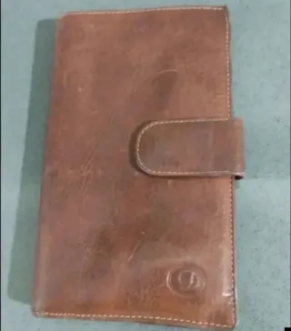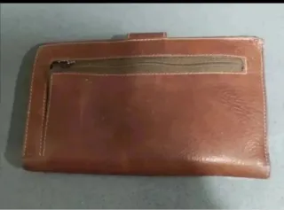 Cartera billetero de cuero marrón, sin uso. - Diseño clásico y elegante. - Compartimento con cremallera. - Cierre de botón a presión. - Dureza: Suave - Patrón: Liso - Medidas largo 18 X 11 de ancho cerrada.