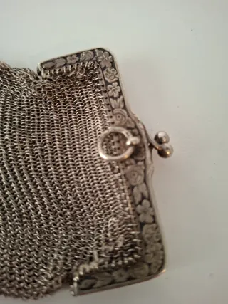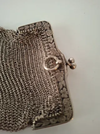 Elegante monedero antiguo con un intrincado diseño floral. - Adornado con motivos florales. - Cierre de broche con anilla.