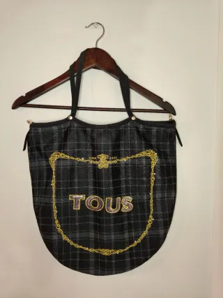 Bolso de mano Tous con un diseño a cuadros en tonos negros y grises. Tiene un monedero interior ligado al bolso bordado y con el logo de la marca
