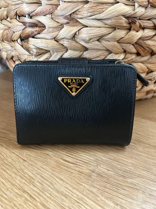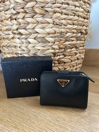 Cartera PRADA de piel safiano Cierre a presión Tiene varios compartimentos interiores Tarjeteros, billetero y monedero con dos compartimentos y cierre con cremallera Logotipo Prada de metal esmaltado en dorado Medidas 12 * 8,5 Unisex Está como nueva, en perfecto estado